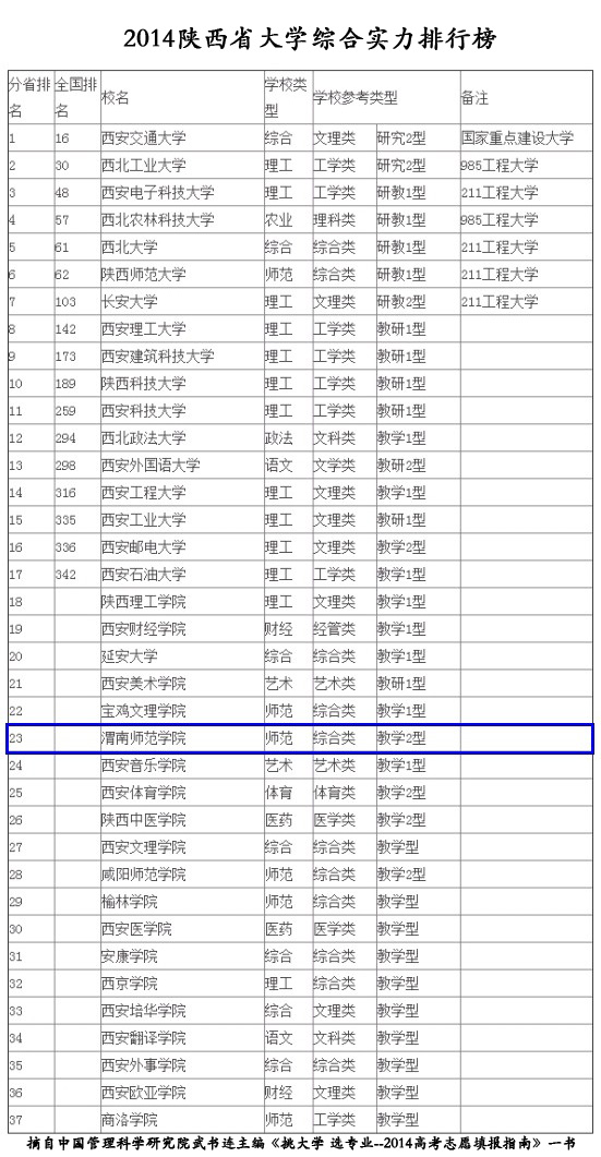 以上数据摘自由中国管理科学研究院武书连主编、中国统计出版社出版的《挑大学选专业--2014高考志愿填报指南》,已于2013年12月出版发行,全书120万字。威尼斯2014年在陕西省37所高校综合实力排行榜中位列第23名,处于全省同类院校前列,比2013年的第25名提前了2名。