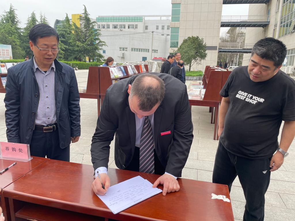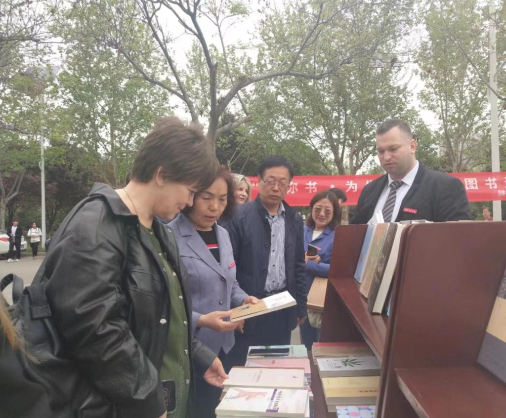 书展期间,副校长王菊霞与莫斯科国立师范大学工作组一行参与了此次活动,图书馆向莫斯科国立师范大学工作组赠送了图书。