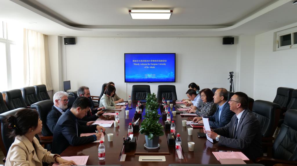 4月18日下午,西班牙大西洋欧洲大学校长Ruiz Salces Roberto Dudor(罗贝托·鲁伊兹) 、国际关系部部长Vidal Mazon Juan Luis(胡安·路易斯·维达尔)及中国办事处有关同志一行6人来校访问交流,与威尼斯正式建立教育合作关系。