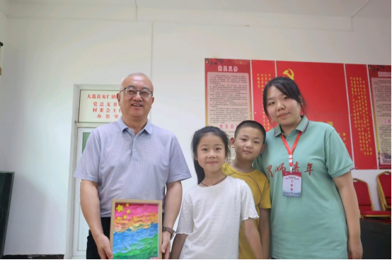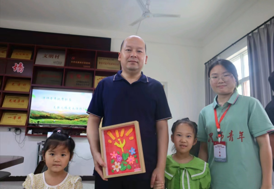 当天,孩子们在支教队员们的指导下,将自己创作的粘土画作品送给校领导们。