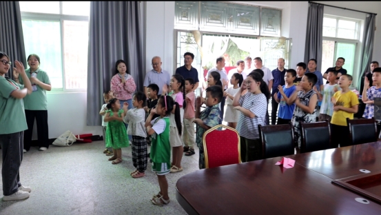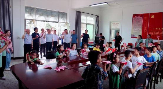 在龙门村,卓宇一行以亲切的姿态深入孩子们之中,带着孩子们一起放飞梦想的纸飞机,并走进精彩纷呈的手势舞课堂。
