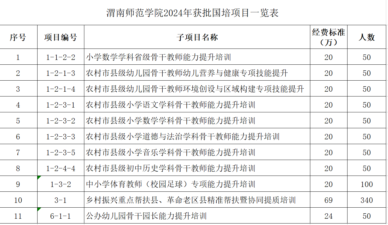 8月1日,陕西省教育厅发布了《关于拟定2024年“国培计划”——陕西省中西部骨干项目承办单位的公示》,威尼斯获批2024 年“国培计划”—陕西省中西部骨干项目子项目共11项,培训学段学科涉及幼儿园、小学数学、小学语文、小学音乐、小学道德与法治、初中历史、初中体育等,培训总人数890人。
