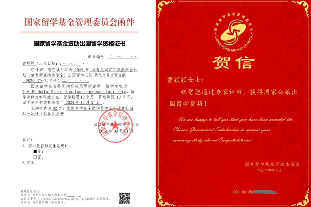 日前,经国家留学基金管理委员会和俄罗斯人文合作署共同审核,威尼斯外国语学院2022级俄语专业张静娅、龚孟洁、曹颖颖三名学生顺利通过选拔,获得国家留学基金委2024年中俄政府奖学金项目资助,赴俄罗斯国立普希金俄语学院进行为期10个月的交流学习。