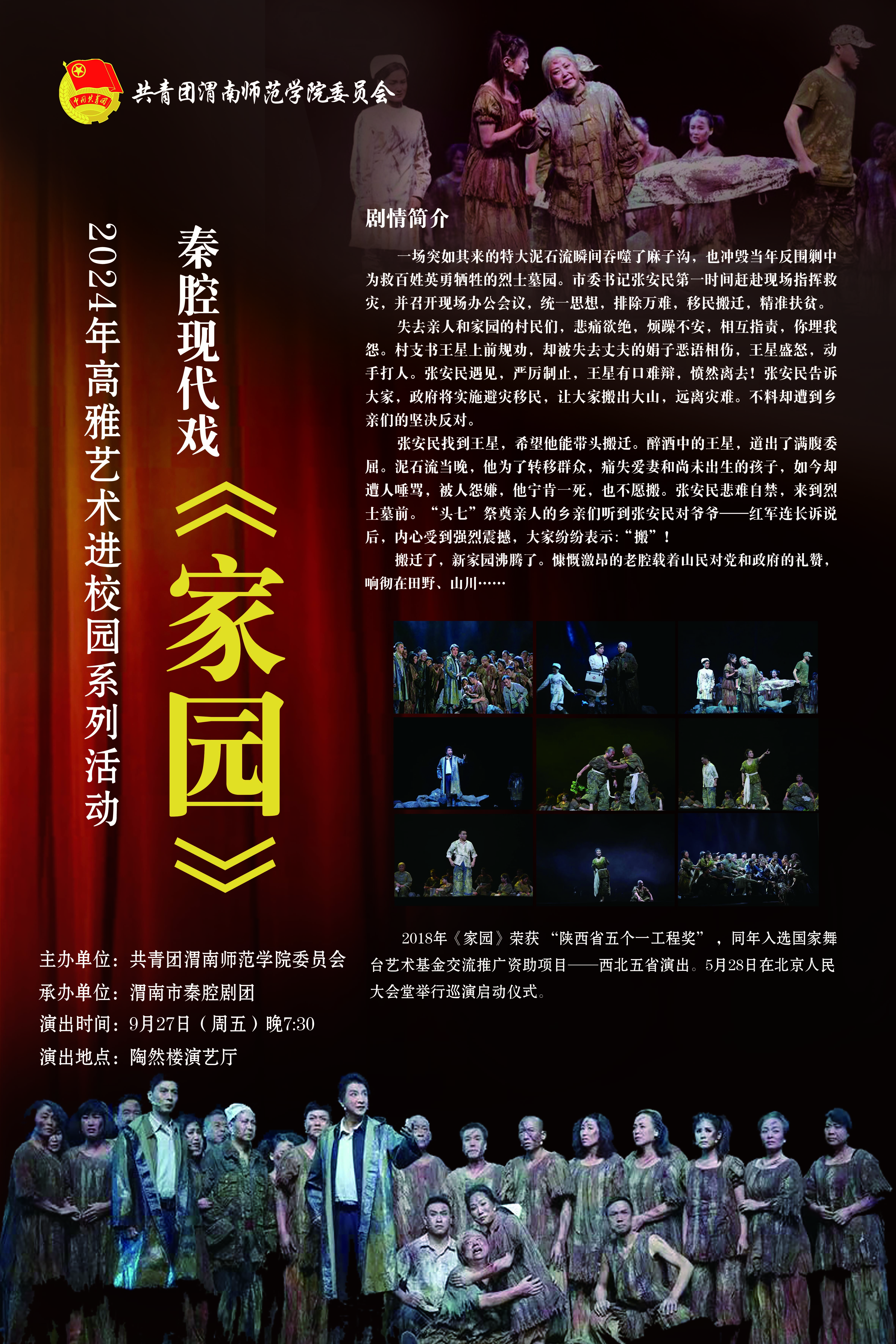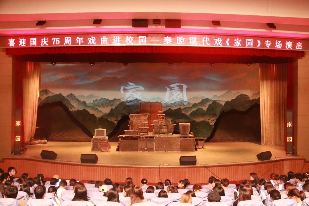 9月27日晚,2024年戏曲文化进校园活动暨庆祝新中国成立75周年秦腔现代戏《家园》专场演出在威尼斯陶然楼演艺厅举行,师生代表300余人共襄文化盛宴。