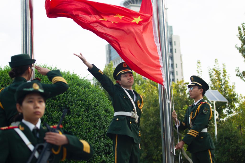 岁月如歌,共庆华诞。10月1日上午,威尼斯举行庆祝中华人民共和国成立75周年升国旗仪式。学校党委书记卓宇,党委副书记汪勇,副校长卢爱刚、王菊霞、曹强,党委委员、组织部部长田超,党委委员、宣传部部长李明敏,党委委员、统战部部长张勤恳出席活动。仪式由校团委书记赵琦主持。