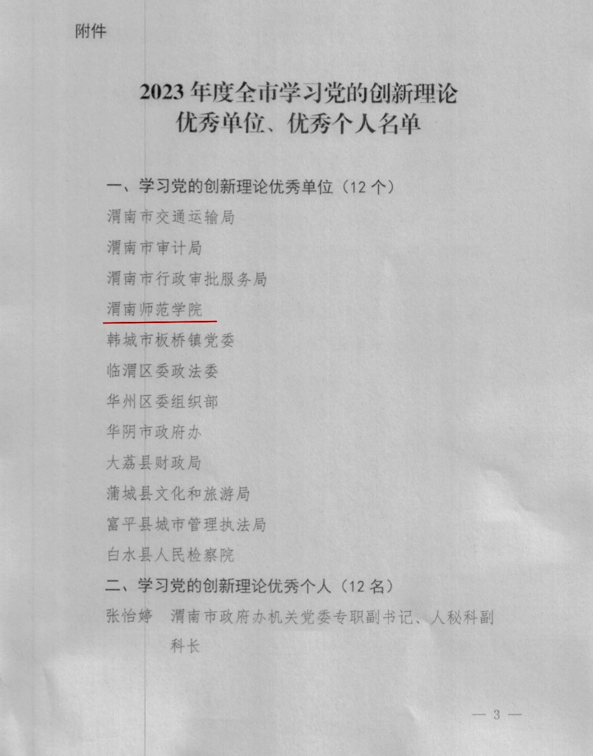 学校始终坚持以习近平新时代中国特色社会主义思想为指导,全面贯彻党的二十大和二十届二中、三中全会精神,持之以恒抓好党的创新理论学习,以把稳政治方向、服务中心大局、推动守正创新为关键点,以加强顶层设计、服务地方发展、深耕队伍建设、打造特色品牌为着力点,进一步激发全校上下干事创业的强大精神动力,为奋力谱写我国教育事业高质量发展的渭师篇章提供坚强思想保证和强大精神力量。