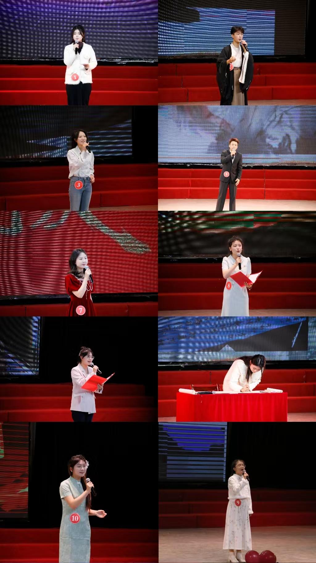 决赛十位选手分别进行了自我介绍、自备主持、即兴评述、才艺展示四个环节的竞争,大家言辞如泉涌,情感深似海,他们用声音绘出了梦想的色彩,用才华点亮了希望之光。