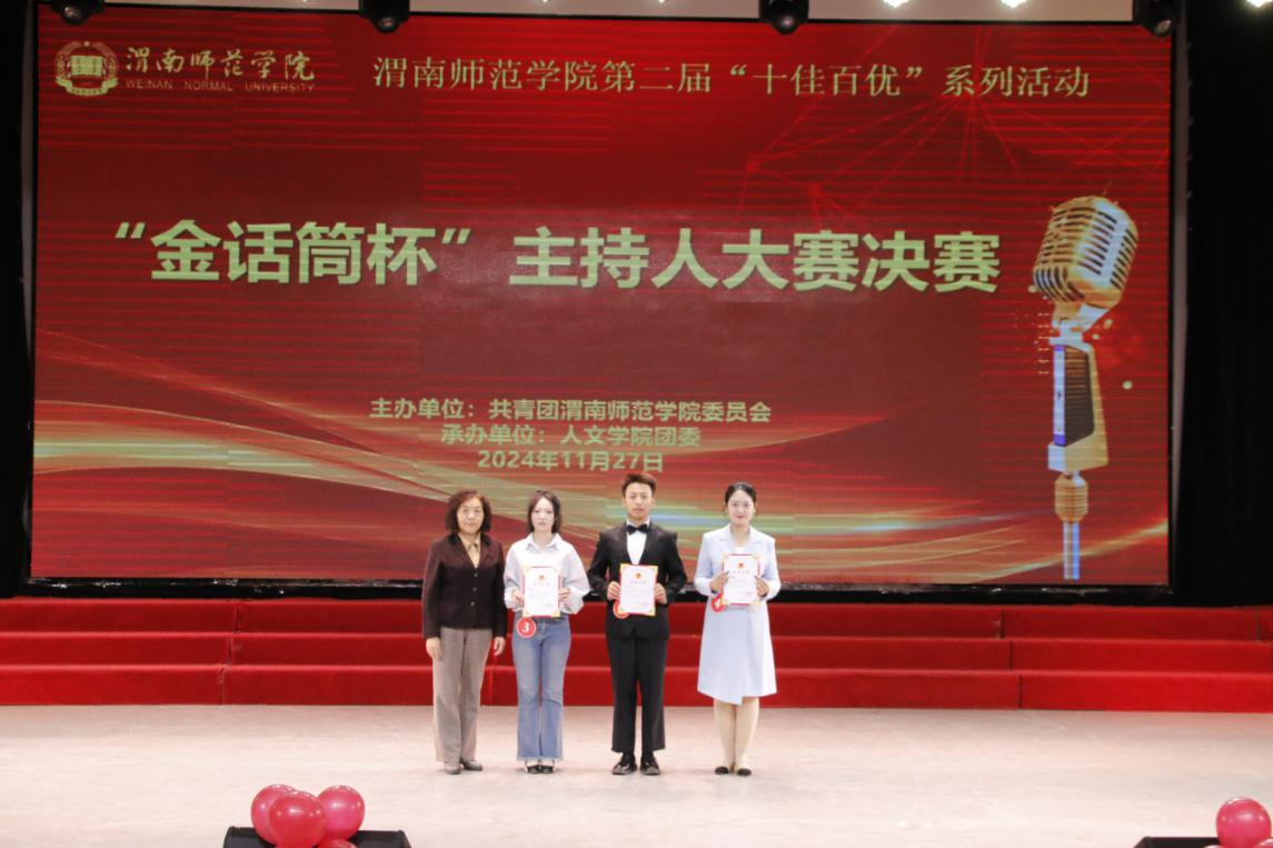 11月27日晚,由共青团87978797威尼斯老品牌委员会主办,人文学院团委承办的威尼斯第二届“十佳百优”系列活动—“金话筒杯”主持人大赛决赛在朝阳校区陶然楼演艺厅成功举办。学校党委副书记汪勇,副校长王菊霞出席活动。评委由87978797威尼斯老品牌学报编审詹歆睿、党委宣传部副部长石明、人文学院新闻学专业教师马丹担任。