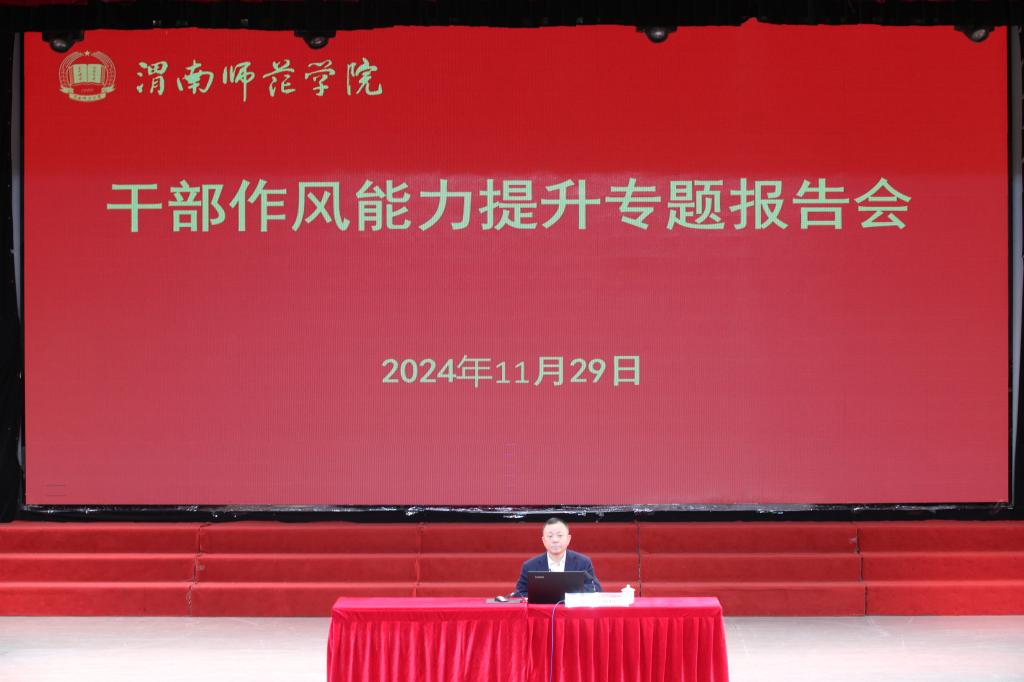 11月29日下午,学校举办干部作风能力提升专题报告会,邀请温州大学原党委书记、研究员谢树华作题为《以现代化治理推动高校高质量发展的实践与思考》专题辅导报告。报告会由党委副书记、校长张守华主持。