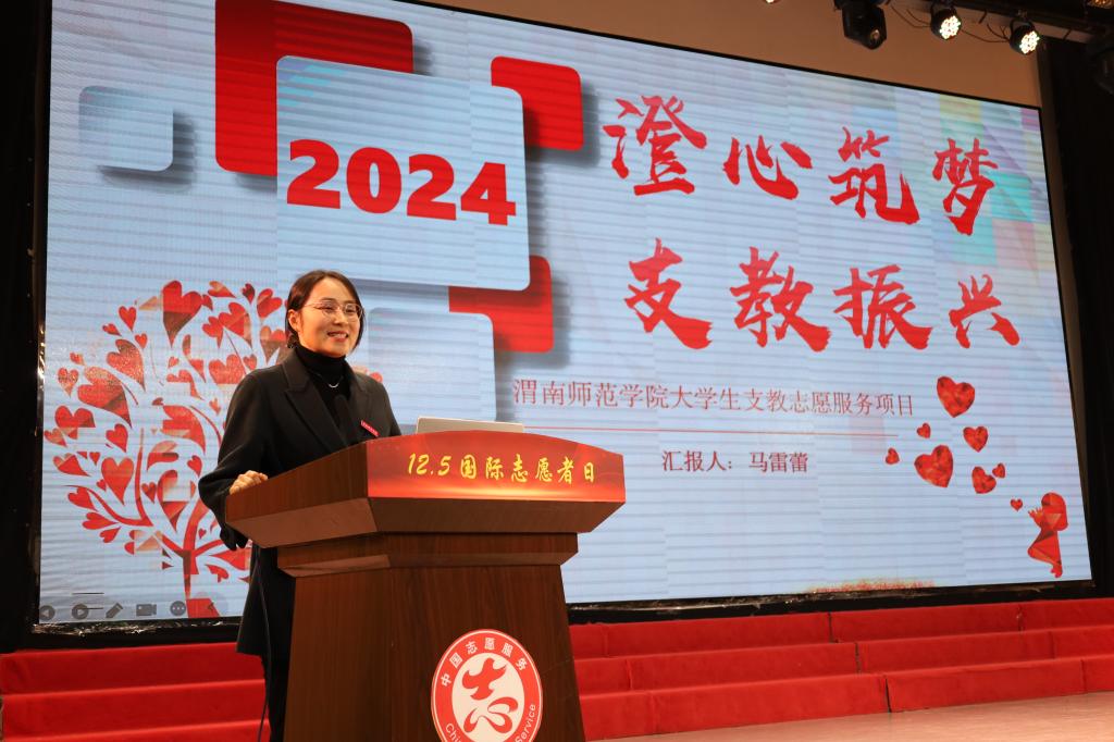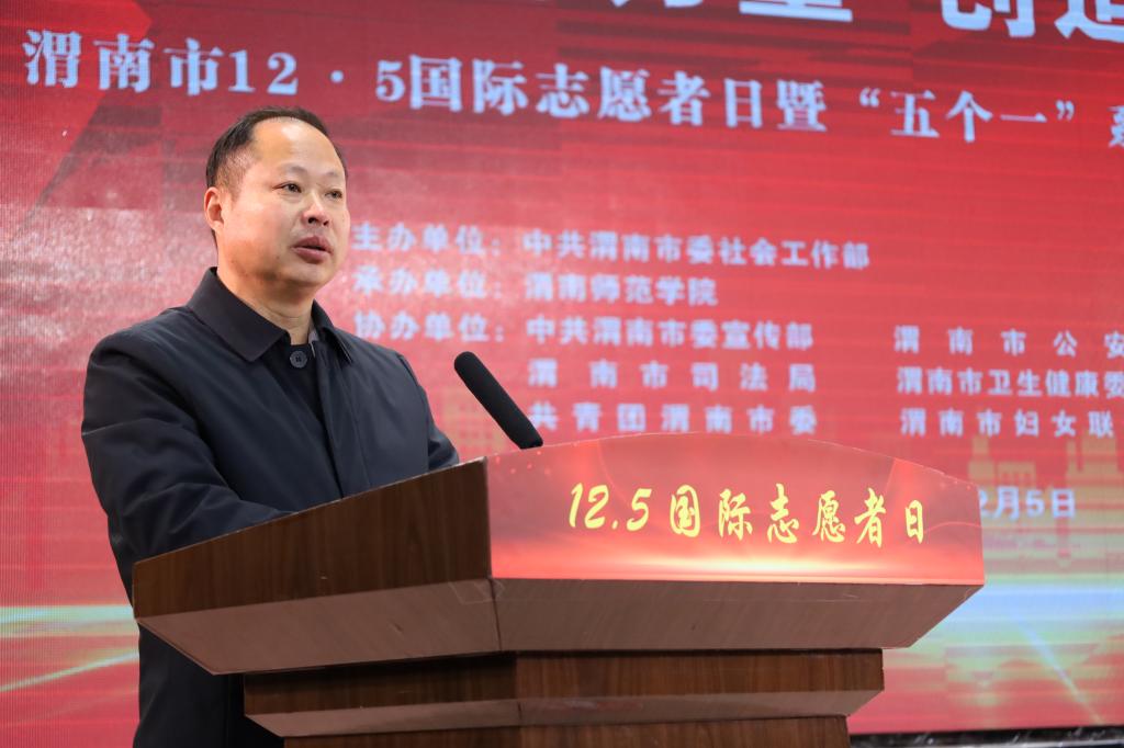 12月5日上午,渭南市12·5国际志愿者日暨“五个一”系列志愿服务主题活动在威尼斯举行。省委社会工作部四处副处长周林,市委社会工作部部长、市委两新工委书记刘永利出席活动,学校党委副书记汪勇为主题活动致开幕词。