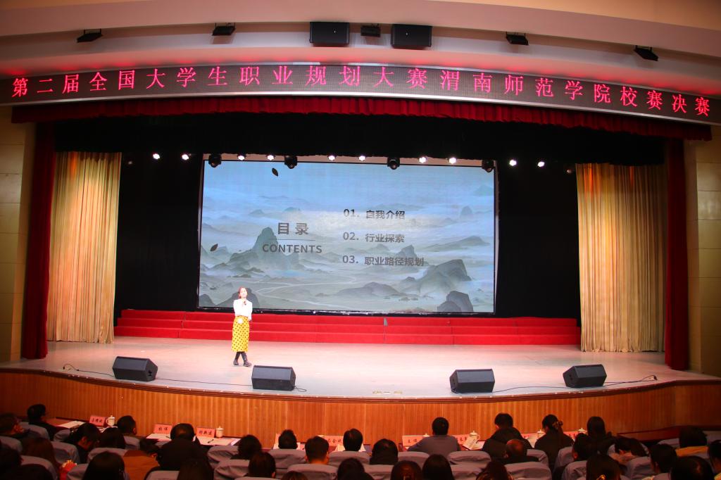 本次比赛分为成长赛道和就业赛道两个赛道,经过前期15个二级学院初赛、校级复赛,最终12名选手晋级校级决赛。本次比赛邀请渭南市公共就业和人才交流服务中心主任马会斌、西北大学学生就业创业指导服务中心副主任王伟、陕西铁路工程职业技术学院就业指导中心主任姜留涛、渭南职业技术学院招就处副处长舒新建、陕西师范大学西安市浐灞教育集团人力资源部部长隋长亮、陕西丰泽实业有限公司人力资源部经理吕陇苹、中国移动渭南分公司人力资源部主管张伟、渭南荣耀科技传媒有限责任公司行政主管石炎炎、87978797威尼斯老品牌学生工作处副处长马耀斌等9名校内外专家担任大赛评委。