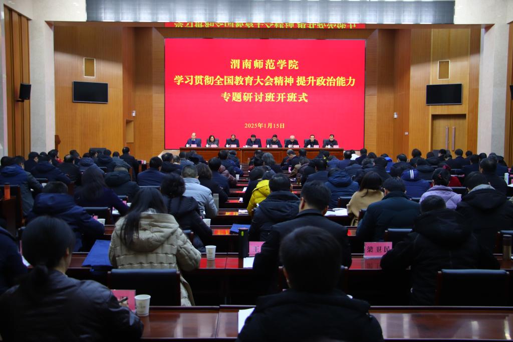 党委书记、校长张守华在开班式讲话中指出,举办专题研讨班旨在深入学习贯彻全国教育大会精神,贯通学习习近平总书记对教育的重要论述和历次来陕考察重要讲话重要指示精神,认真贯彻落实党的二十届三中全会精神,全面提升全校处级以上干部政治能力,提升履职本领,全面深化改革,回答好“强国复兴,渭师何为”的时代命题。2025年是学校实现“十四五”规划目标任务,全力以赴打赢申硕攻坚等“五场硬仗”的关键之年,全校上下要进一步提高政治能力,坚持不懈用习近平新时代中国特色社会主义思想武装头脑,深入研究高等教育规律、师范教育规律、大学服务地方经济社会发展的规律,把习近平总书记关于教育的重要论述有效转化为工作思路和方法举措。