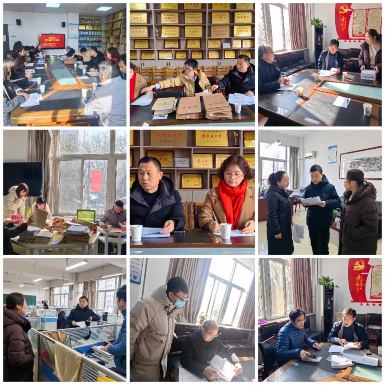 学报编辑部全体人员在渭南日报社校对稿件及在办公室分装和邮寄学报