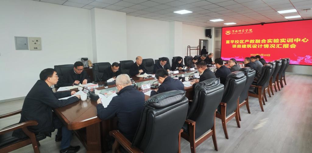 会上,基建处负责人就产教融合实验实训中心项目立项审批情况、已经完成的工作、目前存在的困难和问题以及下一步工作计划向参会领导作了汇报。