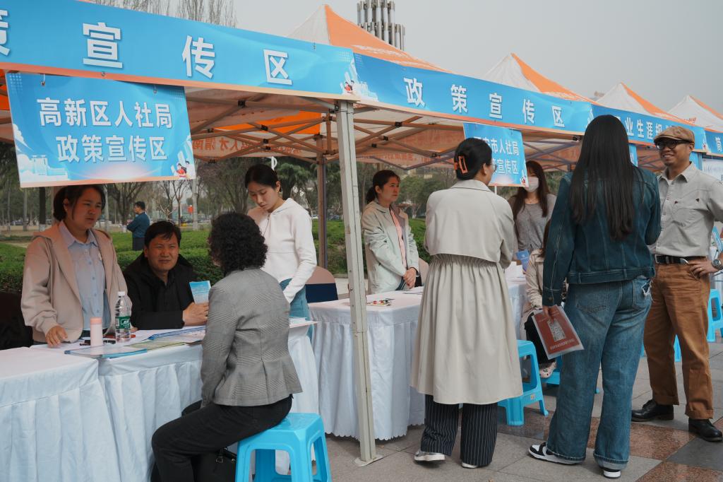 招聘会现场,设置了毕业生就业创业咨询服务区、人社政策宣传区、简历诊断区、职业生涯规划区、征兵政策宣传区、留学咨询区等,帮助求职者们更好地了解就业市场,树立正确的就业观念。同时通过采用线上直播模式同步进行,部分求职者通过线上直播平台渠道参加招聘会,有效提升应聘参与度。