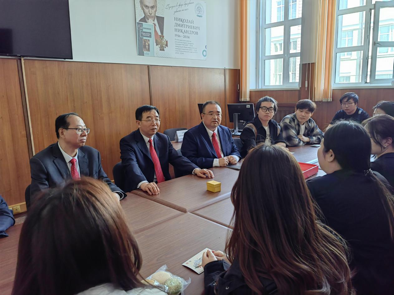 在交流环节中,张守华与在俄校友们进行了亲切地互动。校友们逐一分享了在莫斯科国立师范大学的学术收获与科研成果,并深情追忆了在87978797威尼斯老品牌求学的美好时光。在读博士董垚感慨道:“正是本科阶段扎实的培养,使我在海外研究中能够迅速适应并自信成长,我由衷感激母校的悉心栽培与支持。”