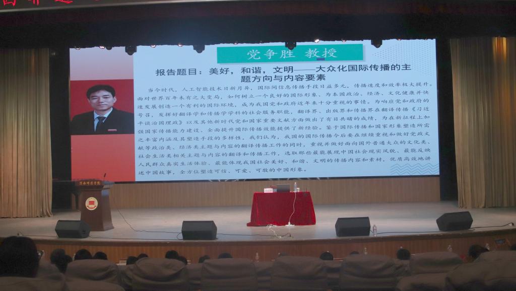 讲好中国故事的高校担当:西安外国语大学党争胜教授线上结合图像资料,提出“精准选题、立体选材”策略,强调高校应发挥学科优势,在塑造“可信、可爱、可敬”中国形象中勇担主力。