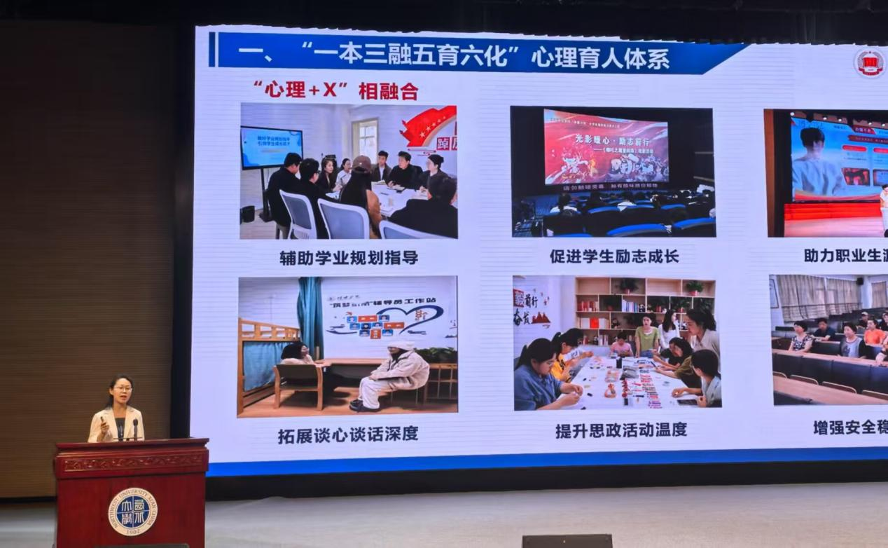学生工作部部长田耿辉代表学校交流发言,全方位展示威尼斯独具特色的心理育人模式。近年来,学校始终以“天天奋斗 天天快乐”的精神为引领,深耕心理健康教育领域,精心构建起“一本三融五育六化”心理育人体系,积极探索“知建联融塑”心理赋能模式,全力打造“快乐育心 阳光渭师”特色品牌,在心理育人工作中取得了丰硕成果。