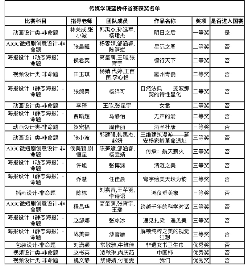 自大赛启动以来,学院在教务处的鼎力支持下,通过周密组织与广泛动员,师生参与热情高涨。经层层筛选,学院从征集的40余件参赛作品中遴选出20件精品参与省级角逐,最终1项作品斩获省级一等奖并成功入围全国总决赛。这一佳绩不仅是对创作团队专业能力的充分肯定,更是学院教学成果与人才培养质量的有力见证。(通讯员 陈栋 审核人 贺宏福)