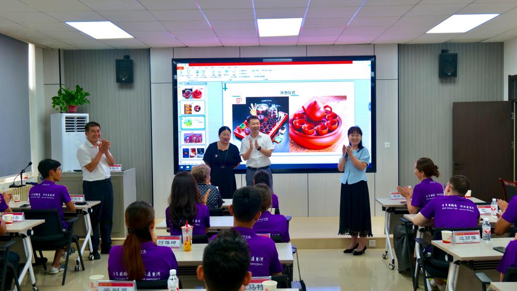 在学生文化体验课上,李强看到师生们正专注学习中国茶文化。他表示,中国和吉尔吉斯斯坦是好邻居、好朋友、好伙伴,文化交流是增进两国青年理解与友谊的重要桥梁。他希望同学们能在此次陕西研学之旅中沉浸式感受中华文化魅力,收获知识、缔结友谊,成为传承中吉友好的使者。师生们对校长的关怀表达了诚挚感谢,现场气氛温馨融洽。