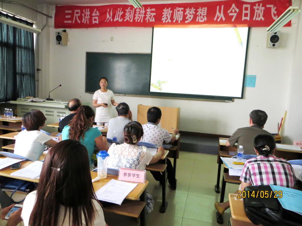 本次竞赛内容分教学设计、说课、上课、多媒体课件制作与使用等四个项目。为搞好竞赛活动,二级学院为每个参赛学生安排了指导教师,学校开放微格教室,为学生备课、试讲提供方便。