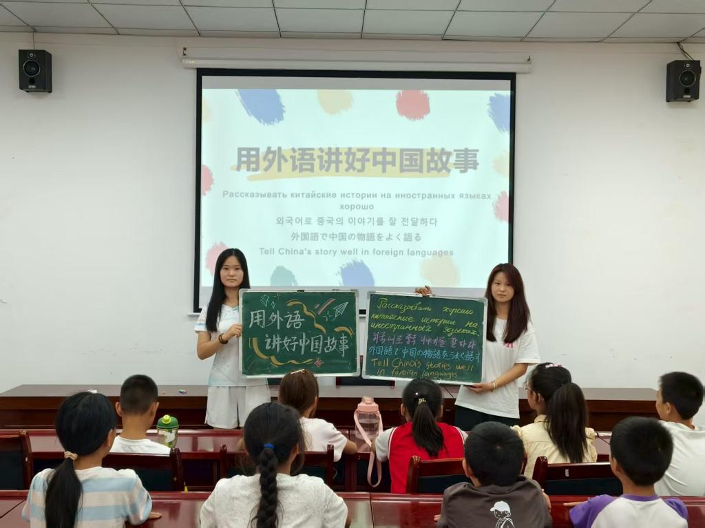 物理与电气工程学院“格物致知路”支教团在临渭区乐天社区开设分层课程,以“夯实基础、拓宽视野、助力成长”为目标,通过多元课程与特色活动,为社区4-6年级同学送去知识和温暖。外国语学院组织40名多语种学生赴乡村,开设日语、俄语等兴趣课,引导孩子“用外语讲中国故事”。