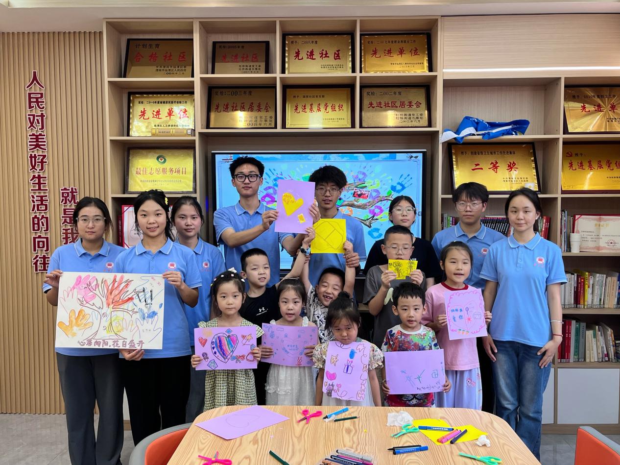 (二)青少年关爱马克思主义学院“助力儿童成长”团开展“少年警校”项目,通过“3D微缩交通世界”使儿童与家长的交通安全知识知晓率大幅提升;在留守儿童服务站开展“积木拼搭”“西瓜扇制作”等活动,筑牢成长防线。教育科学学院在临渭区三贤路社区带领小朋友们体验扭扭棒与纸浆画的创作乐趣。