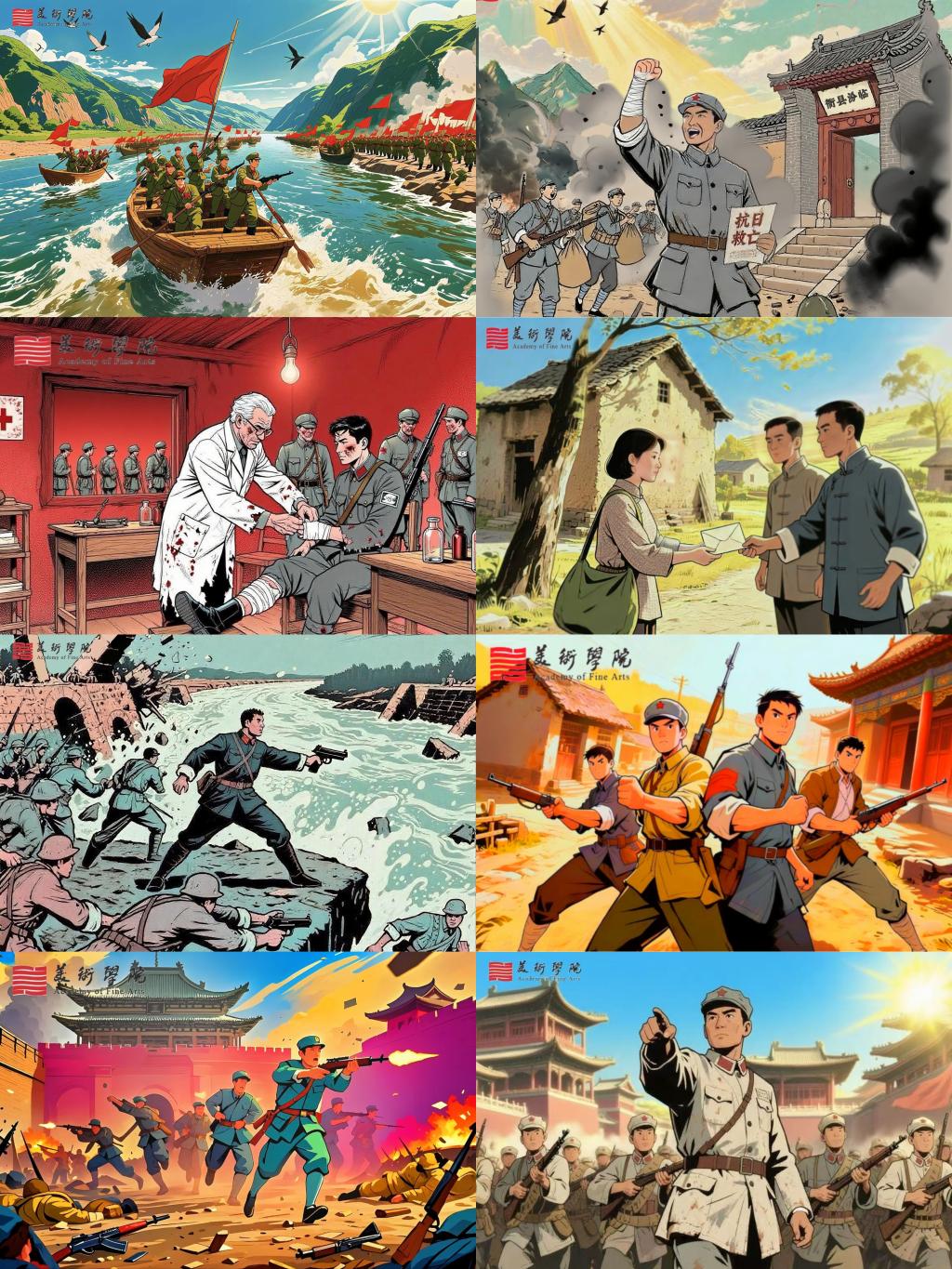 莫斯科艺术学院带领特殊儿童体验漆扇绘制、青花瓷贴画等非遗技艺,举办“艺术无残缺”艺术展览广受关注。美术学院“黄河红漫实践团”沿黄河流域走访13个城市,收集30余个民间红色故事,创作86幅漫画作品,《八路军东渡黄河》《小秦岭生态修复》等作品引发共鸣。音乐学院“舞韵归乡”队融入地方戏曲民俗元素创作舞蹈,在社区展演展现非遗魅力。
