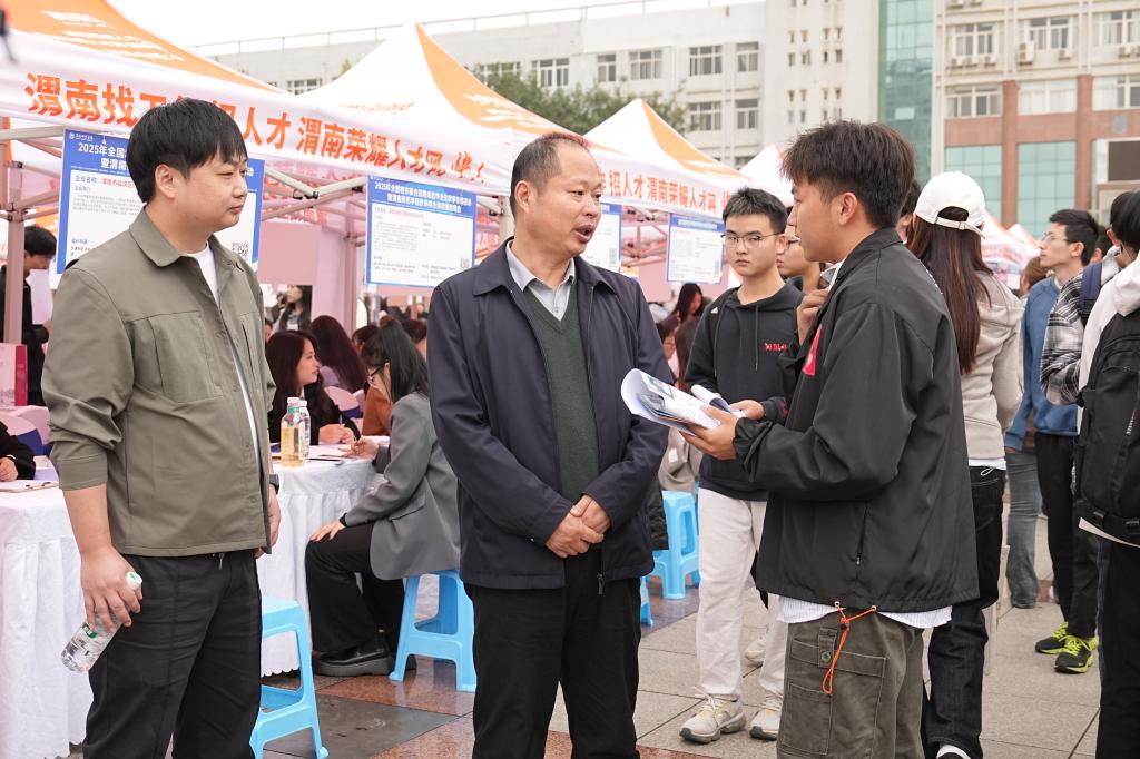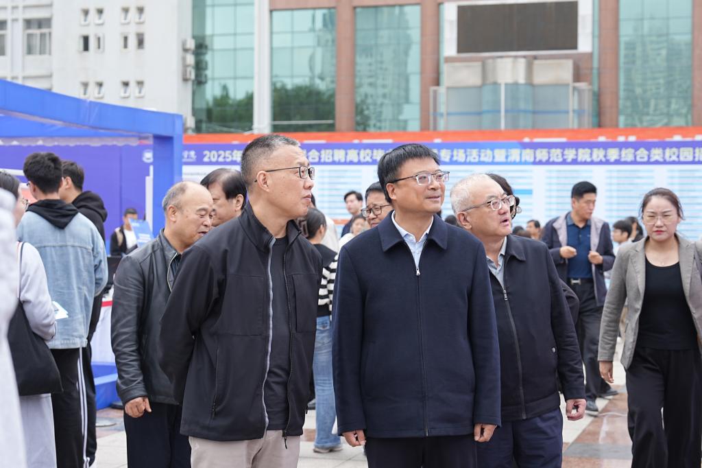 学校党委副书记、校长李强,党委副书记汪勇、袁亮、常青林,副校长卢爱刚,渭南市人力资源和社会保障局二级调研员董建明等共同深入招聘会现场指导,与多家企业代表、求职毕业生亲切交流,深入询问岗位招聘细节与毕业生求职进展,精准掌握供需双方实际情况。