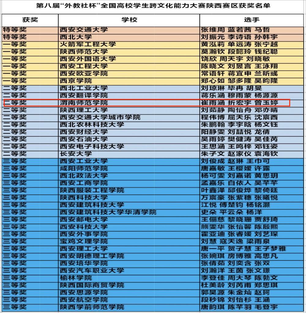 此次“外教社杯”全国高校学生跨文化能力大赛是面向全国大学生的重要赛事,旨在通过赛事平台考察并提升学生在多元文化语境下的分析、沟通与解决问题的能力。本次陕西赛区比赛竞争异常激烈,吸引了包括省内39支高校优秀参赛队伍同台竞技。(通讯员 孙莹 审核人 李海荣)