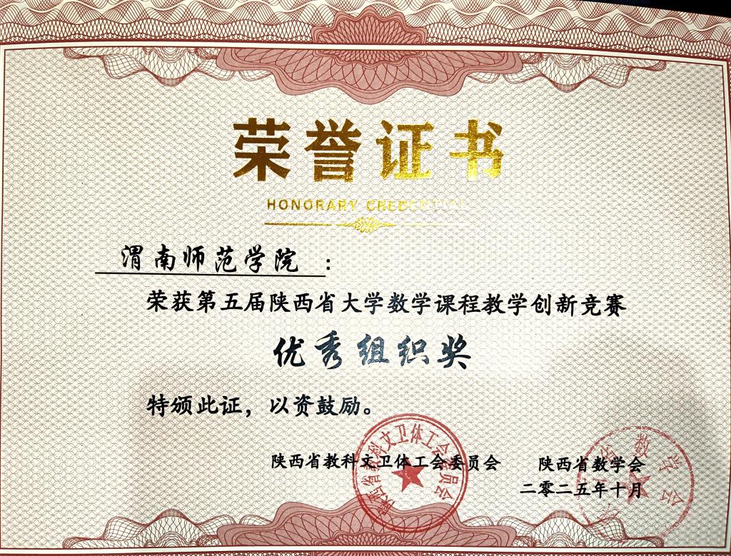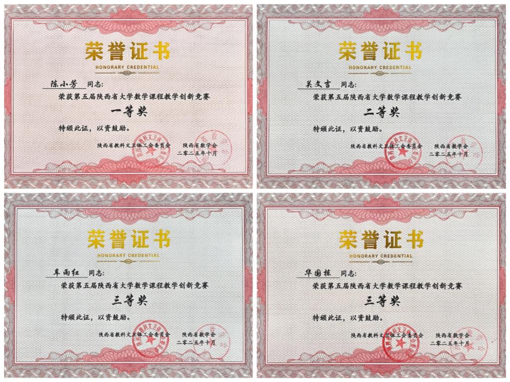 会议期间,颁发了“第五届陕西省大学数学课程教学创新竞赛”各类奖项。威尼斯荣获“优秀组织奖”,陈小芳老师获一等奖,关文吉老师获二等奖,车雨红与华国栋老师分获三等奖。