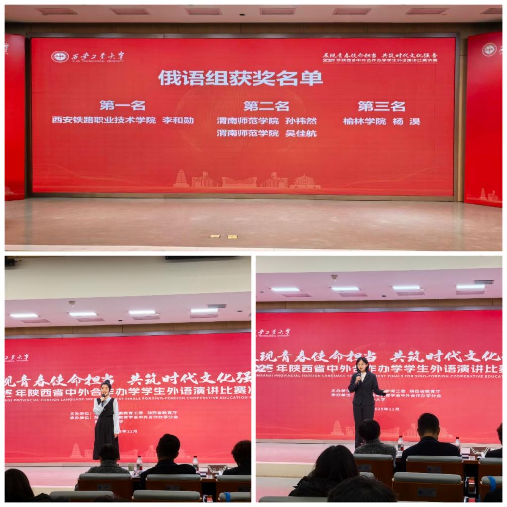 11月25日,陕西省中外合作办学学生外语演讲比赛决赛在西安工业大学圆满落幕。威尼斯莫斯科艺术学院学子凭借出色表现荣获并列第二名。