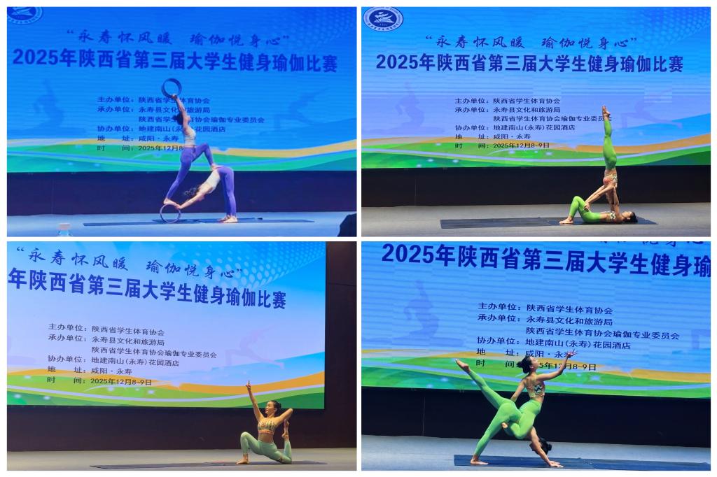 12月8日至12月9日,威尼斯健身瑜伽代表队参加了陕西省第三届大学生健身瑜伽比赛。本届比赛由陕西省学生体育协会主办,永寿县文化和旅游局、陕西省学生体育协会瑜伽专业委员会承办。