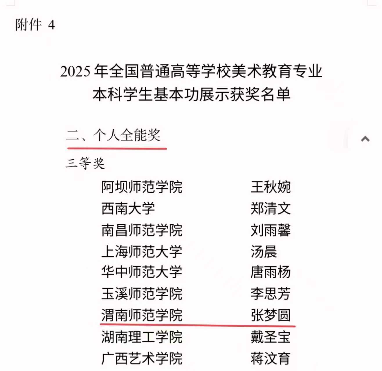赛场之上,面对全国百余所高校的优秀选手,张梦圆以逻辑清晰的教学架构、生动鲜活的课堂呈现、贴合美术教学实际的创新设计,在基本功展示中表现出了较高专业素养,赢得评委与同行的认可。通过这次比赛,美术学院进一步积累了参赛经验,为今后培养更多优秀艺术人才奠定了坚实基础。(通讯员 李乐乐 李媛媛 审核人 周德锋)