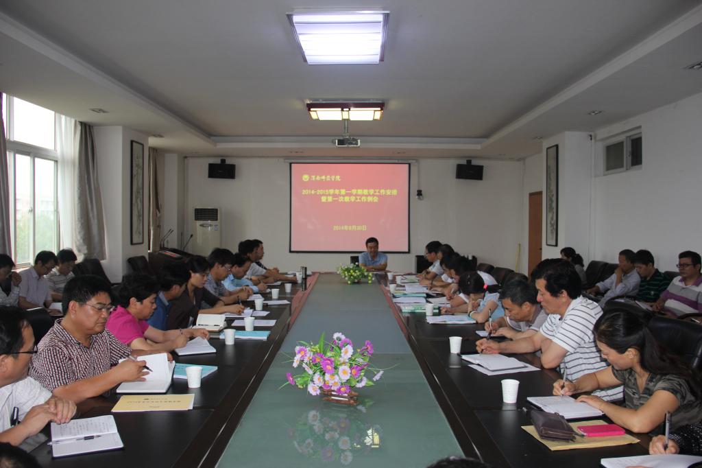 8月30日,新学期报到第一天,学校在厚德楼三层会议室召开本学期教学工作安排暨第一次教学工作例会,院长丁德科出席会议,会议由副院长程书强主持。