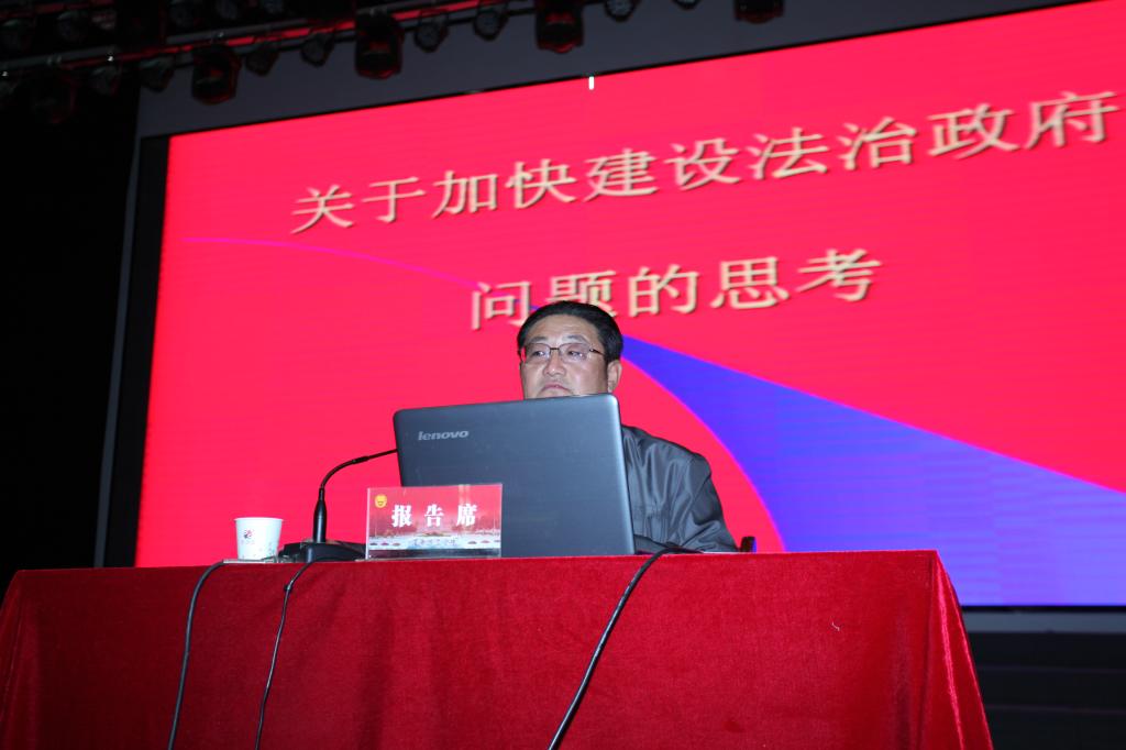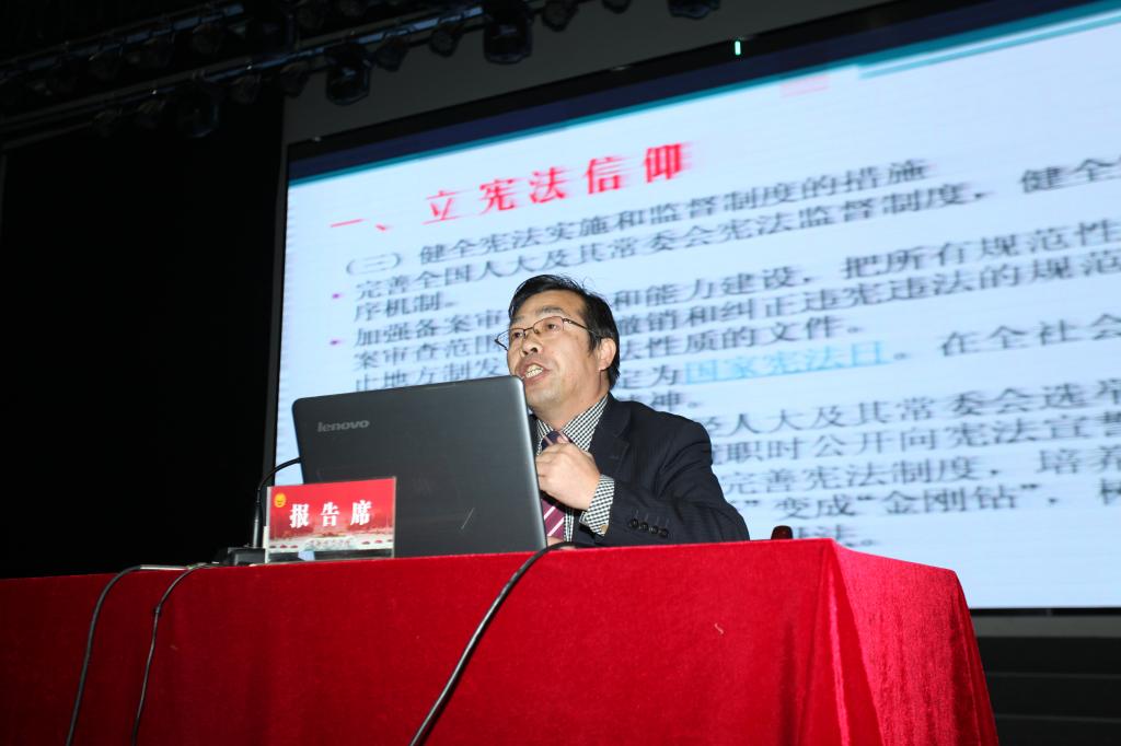 钱怀瑜以“立宪法信仰,依良法而治”为主题,从完善以宪法为核心的中国特色社会主义法律体系,加强宪法实施等方面详细宪法的实施和监督制度、完善立法体制,深入推进科学立法、民主立法、加强重点领域力法等四方面作了详细阐述。游学民以“深入推进依法行政,加强建设法治政府”为主题,从加快建设法治政府的重要性和紧迫性,切实加强法治政府的组织领导等方面对全面推进依法行政的指导思想、基本原则和重大任务进行了讲解。段晓梅以“加强全民法治观念,推进法治社会建设”主题,从推动全社会树立法治意识、推动多层次、多领域依法治理、建设完备的法律服务体系、健全依法维权机制四方面指出了十八届四中全会的精神在现实中的重大意义。