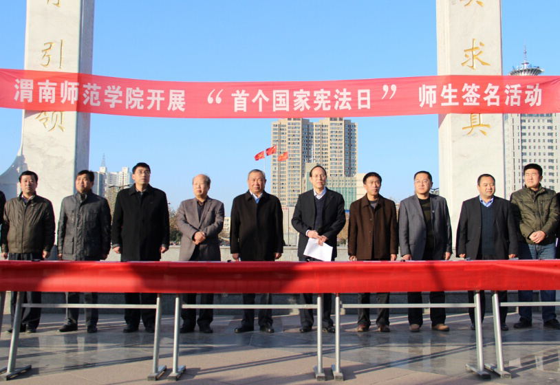 12月4日下午,威尼斯在名人广场渭华门南侧开展“首个国家宪法日”师生签名和系列活动。学校党委书记张金安研究员、党委副书记赵伏友研究员出席活动,学校党政办、宣传部、监察处、学工部、新闻中心、保卫处、法律教育与研究中心、校团委等部门负责人,各二级学院党总支副书记、团总支书记,学校团学组织代表、各学生社团组织代表、各学院学生6000余人。活动由学校党委委员、组织部长杨小渭主持。