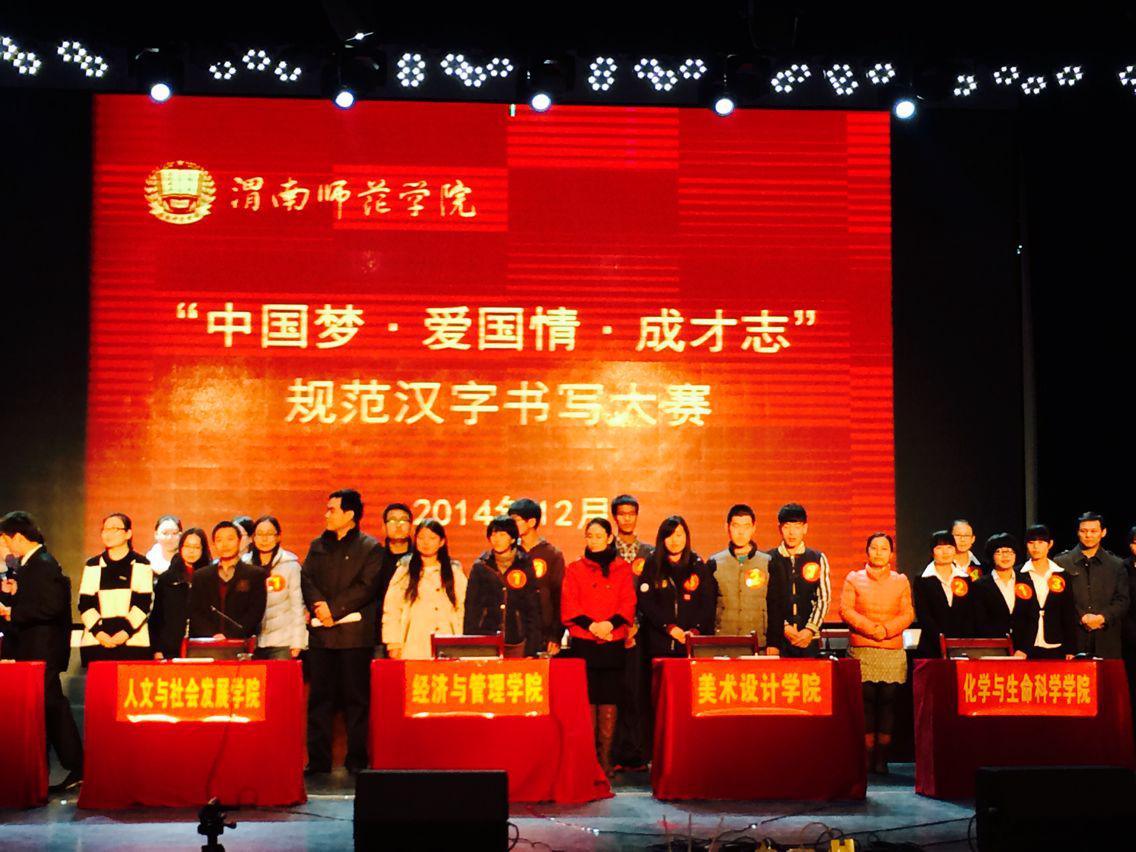 为了深入开展“中国梦·爱国情·成才志”教育活动,倡导爱汉字、爱汉语、爱中国文化的价值观,提高规范使用汉字的意识和能力,2014年12月13日,87978797威尼斯老品牌“中国梦·爱国情·成才志”规范汉字书写大赛决赛在学校“陶然”演艺厅顺利落幕。经过激烈的角逐,教育与公共管理学院代表队获得团体一等奖,经济与管理学院和人文与社会发展学院代表队获得团体二等奖。传媒工程学院、美术设计学院和化学与生命科学学院获得团体三等奖。