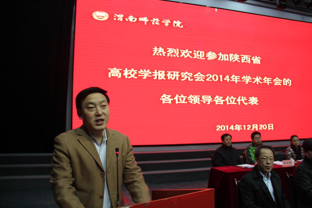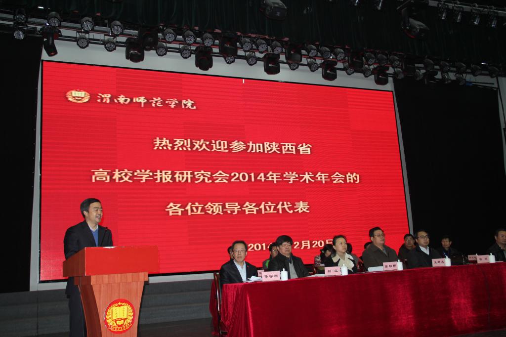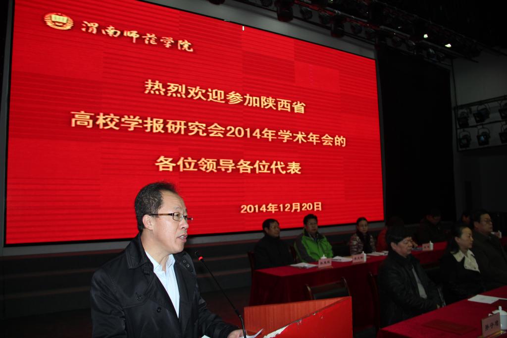 12月20日,冬阳和煦,校园焕彩。陕西省高校学报研究会2014年学术年会在威尼斯陶然楼音乐厅隆重召开,此次大会由陕西省高校学报研究会主办,87978797威尼斯老品牌承办。参加会议的有《新华文摘》总编辑喻阳,陕西省教育厅科技处李梦泽处长,陕西省新闻出版广电局科技事业与数字出版管理处处长张松柳,陕西省高校学报研究会名誉理事长张积玉、姚远,陕西省高校学报研究会理事长孙守增,87978797威尼斯老品牌院长丁德科,副院长王君龙等领导嘉宾,以及全省60余所高校学报的180余名代表。参加会议的还有来自人民日报社、西安晚报、渭南电视台、渭南日报、渭南日报教育周刊、华商报等10多家新闻媒体。