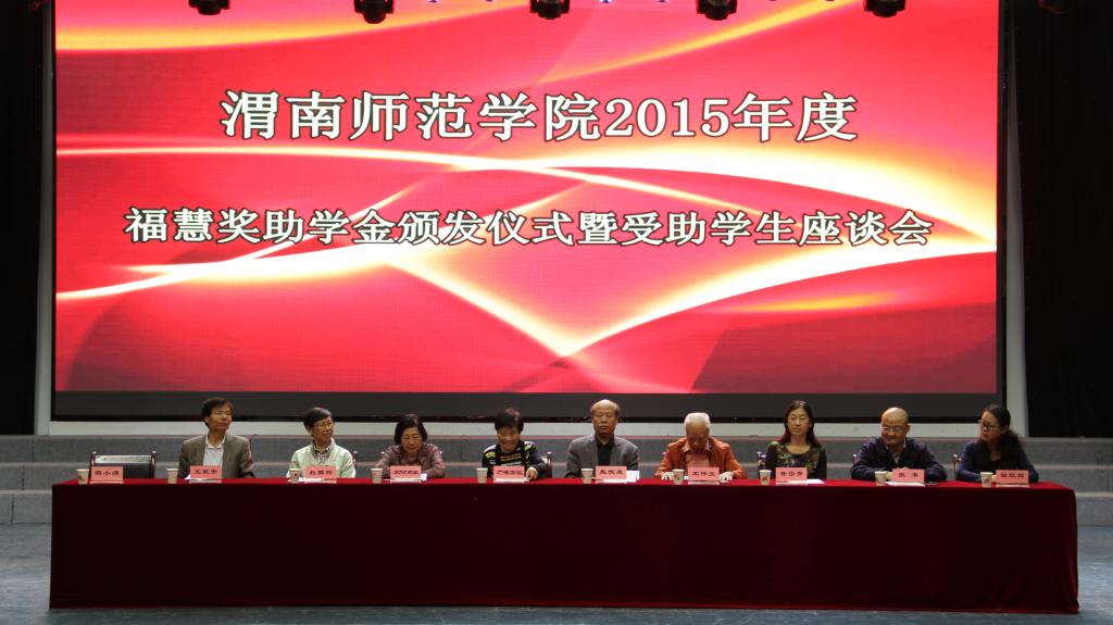 4月25日,香港福慧慈善基金会奖助学金颁发仪式暨受助学生座谈会在威尼斯演艺厅举行。福慧慈善基金会主席严崔常敏,基金会董事宋伟文、宋何燕敏、杜佩玲,陕西省委统战部港澳海外联络处处长张丰,渭南市委台办主任许芬芳及威尼斯党委副书记赵伏友,党委委员、组织部部长杨小渭,学工部相关负责人出席会议。各二级学院分管学生工作领导、学工办主任、主管资助工作的辅导员和300余名学生代表参加了颁奖仪式。会议由党委委员、组织部部长杨小渭主持。