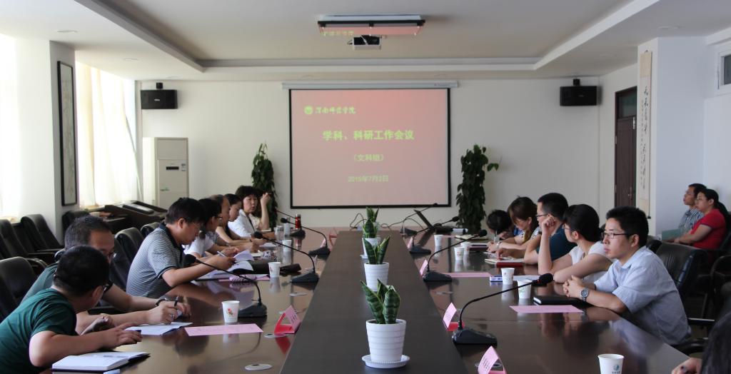 7月2日上午,学校在厚德楼四层大会议室召开了学科、科研(文科组)工作会议。参加会议的有校学科办、科技处、社科处全体人员;各二级学院院长,主管学科、科研副院长,科研秘书,特色学科项目、子项目负责人等人员。副院长李海龙出席会议,会议由学科办主任高敏芳主持。