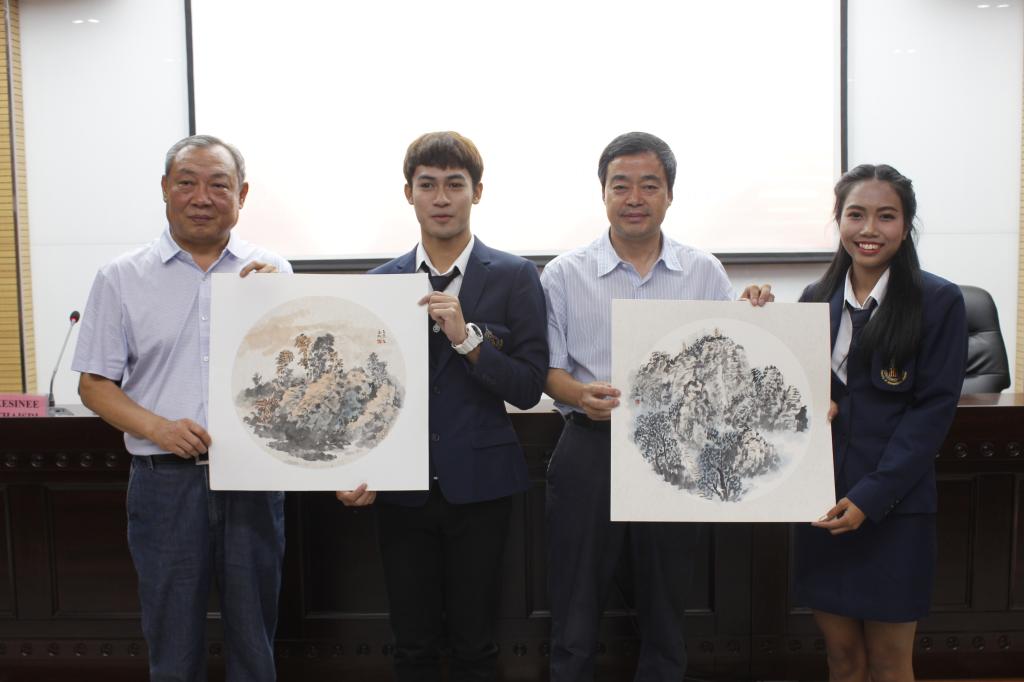 接着,院长丁德科发表重要讲话。丁院长对留学生在学习、生活等方面取得的成绩表示祝贺。他指出此次国际汉语留学生班的成功举办标志着威尼斯与宋卡王子大学开始了实质性的合作,不仅增加了两校的友谊,而且增进了中泰两国人民的情谊。威尼斯将派教师赴泰攻读泰语硕士,不断促进威尼斯的双语教师课程建设。随后,张书记、丁院长为培训班学员颁发了结业证书,接着为优秀学生颁发了由美术设计学院提供的书画作品,激励学生努力学习,不断进步。之后与会领导、老师与泰国学生合影留念。