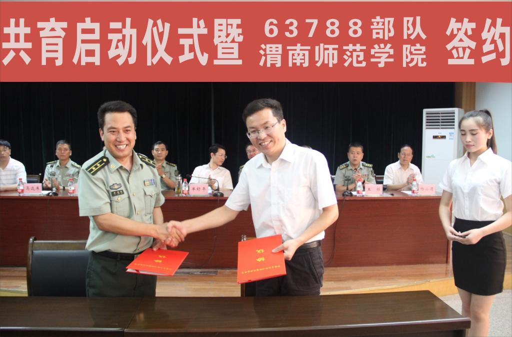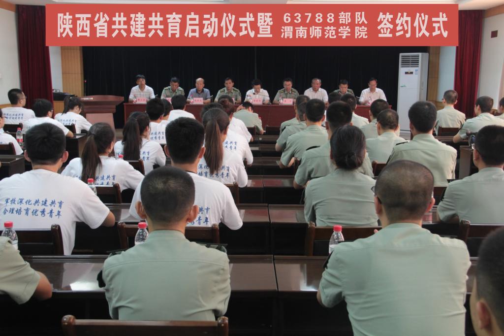 7月28日, 63788部队与威尼斯签约仪式在渭驻地部队举行。共青团陕西省委副书记单舒平、威尼斯党委书记张金安、党委副书记赵伏友,党委委员、组织部长杨小渭, 63762部队政委李宁大校,英模单位63788部队政委马远库上校、站长王栋上校,威尼斯党政办、人武部、团委等部门负责人及学生代表、官兵代表参加签约式。