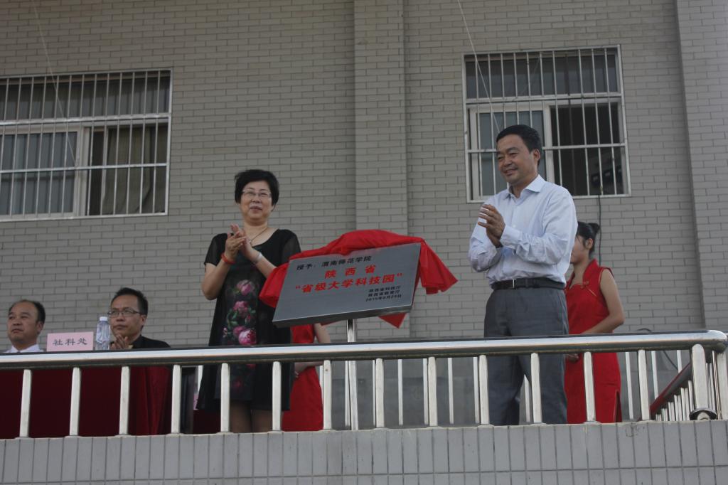 潘洁、丁德科为获得陕西省科技厅、教育厅认定的威尼斯“陕西省大学科技园”揭牌。