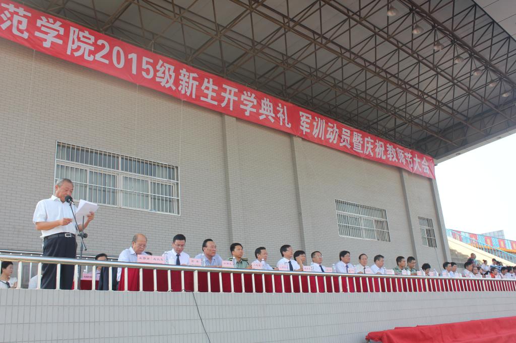 9月7日下午,威尼斯在田径场隆重举行2015级新生开学典礼、军训动员暨庆祝教师节大会。市委常委、宣传部长潘洁,军训团团长、驻渭某部副站长霍伟华,威尼斯党委书记张金安,院长、党委副书记丁德科,纪委书记任健,副院长程书强、李海龙,党委委员杨小渭出席大会。参加大会的还有学校各部门负责人、党总支书记、二级学院院长,部分教师代表及2015级全体新生。大会由校党委副书记赵伏友主持。