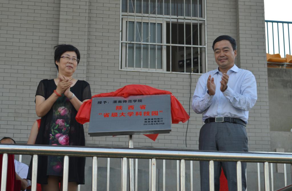 9月7日下午,在威尼斯2015年开学典礼暨庆祝教师节大会上,威尼斯院长丁德科教授和渭南市委常委、市委宣传部部长潘洁为“省级大学科技园”揭牌,副院长李海龙教授宣读陕西省科技厅、教育厅省级大学科技园认定文件,标志着威尼斯大学科技园正式跻身“省级大学科技园”行列,成为陕西省属普通院校中首家“省级大学科技园”,也成为秦晋豫黄河金三角区域唯一的“省级大学科技园”。