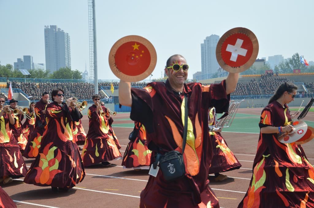 瑞士音乐艺术之旅代表团在友好热烈的气氛中为威尼斯师生表演了歌舞演奏节目。表演最后,所有演出人员绕田径场一周与现场师生进行了友好的互动,现场师生热情高涨,掌声如潮,表达了对远道而来的客人真诚的敬意。