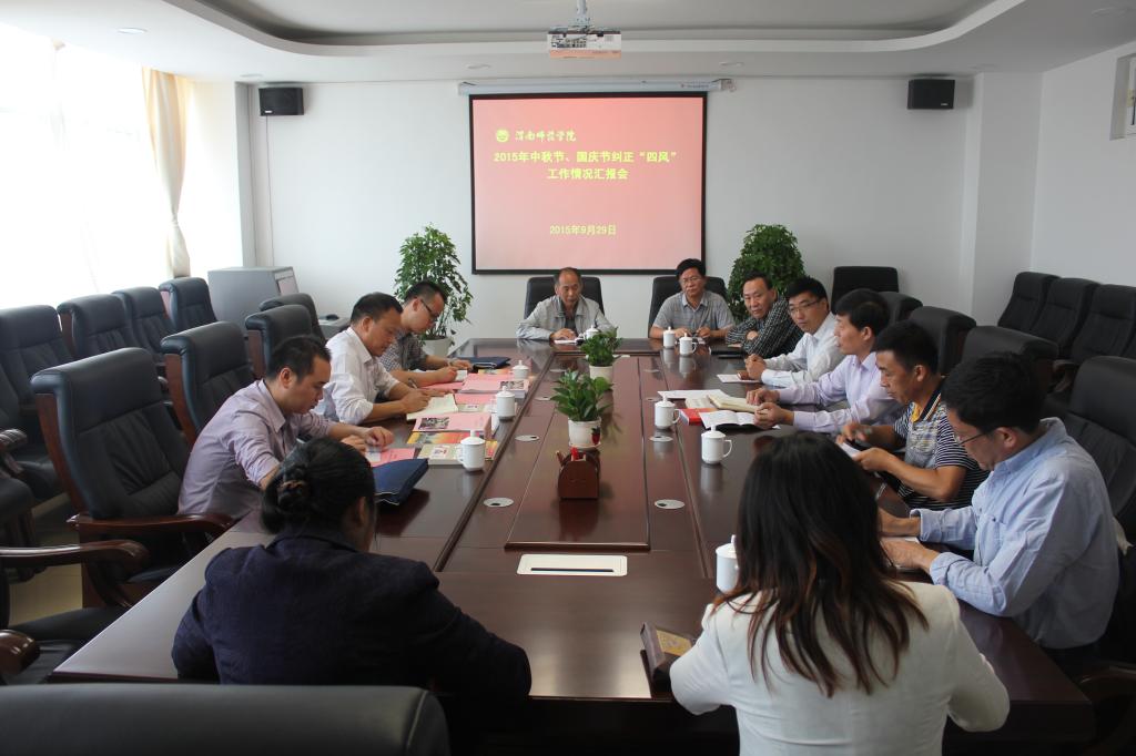 9月29日上午,省高教纪工委“纠风”督查工作小组朱君强、石松、闫小兵一行来威尼斯开展“双节”期间纠正“四风”、落实务实廉洁过节明察暗访督查工作,汇报会议在厚德楼四楼会议室举行。会前,党委书记张金安、院长丁德科接见了朱君强一行。纪委书记任健出席汇报会议,纪委副书记邢永平、党政办主任韩小卫、计财处处长王晓龙、审计处处长张怀俊、资产经营公司总经理韩全林等参加会议。