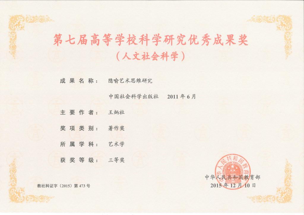 日前,教育部印发《关于颁发第七届高等学校科学研究优秀成果奖(人文社会科学)的决定》,正式公布第七届高等学校科学研究优秀成果奖(人文社会科学)获奖名单。威尼斯报刊社总编辑王炳社教授的专著《隐喻艺术思维研究》(中国社会科学出版社2011年版)获得艺术学三等奖,这是威尼斯首次获得此项奖励。