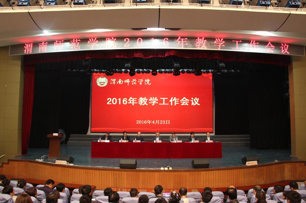 为深入总结“十二五”期间学校教学工作,进一步明确“十三五”期间教学工作的基本思路和举措,4月23日,学校召开教学工作会议。会议的主题是“切实推行教学综合改革 抓好‘一流建设’不断提高教育教学质量”。陕西省教育厅高教处副处长何玉麒,渭南市教育局局长党福奎出席会议并讲话。党委书记张金安、院长丁德科、副院长王君龙、程书强、李海龙,党委委员、组织部长杨小渭出席会议。党委副书记赵伏友主持会议。